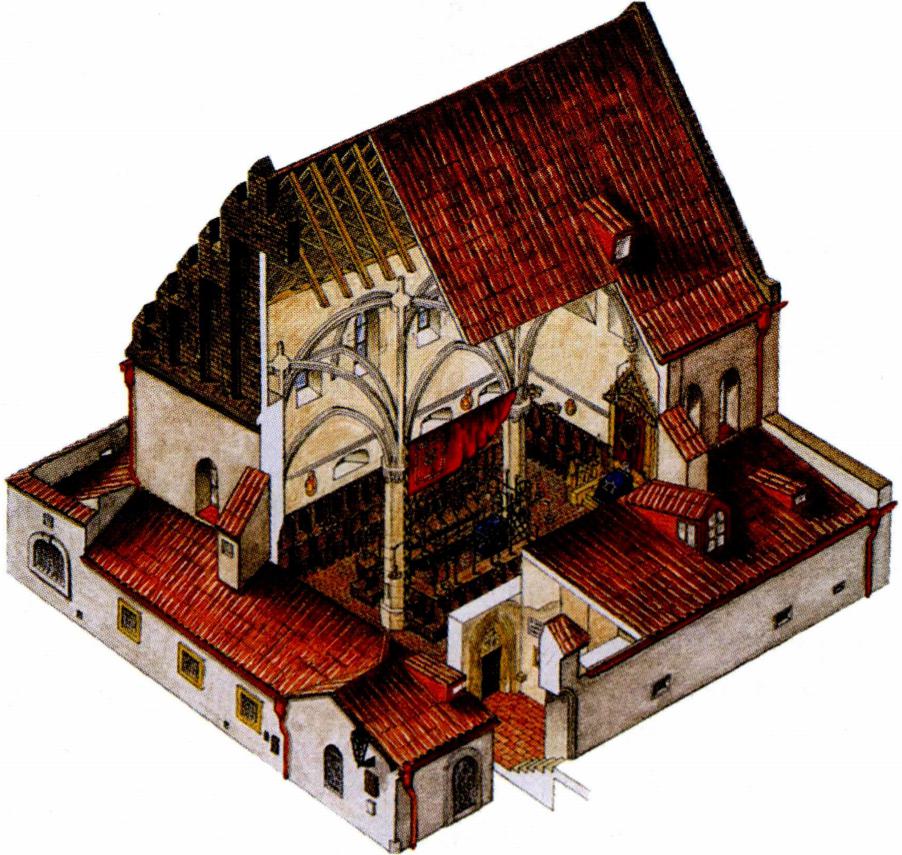 〔기 원〕 회당이 어떻게 생겨났는지 정확히는 알 수 없다. 구약성서나 신약성서 어느 곳에도 회당의 기원을 암시하는 구절은 없으며, 성서 밖의 자료들(외경이나 비문 등) 또한 마찬가지이다. 랍비 문헌들은 회당의 기원과 활동을 모세와 에즈라에 연결시킨다(《예루살렘 탈무드》 메길라 4. 1 ; 차명 요나단 타르굼 출애 18, 20). 그러나 회당이라는 용어가 모세와 에즈라 시대에는 사용되지 않았으며, 율법을 듣기 위해 회중이 모였다고 해서 회당이 있었음을 암시하는 것으로 보기는 어렵다.