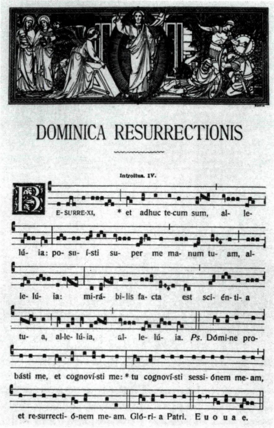 부활 대축일 미사 때의 그레고리오 성가 도입부.