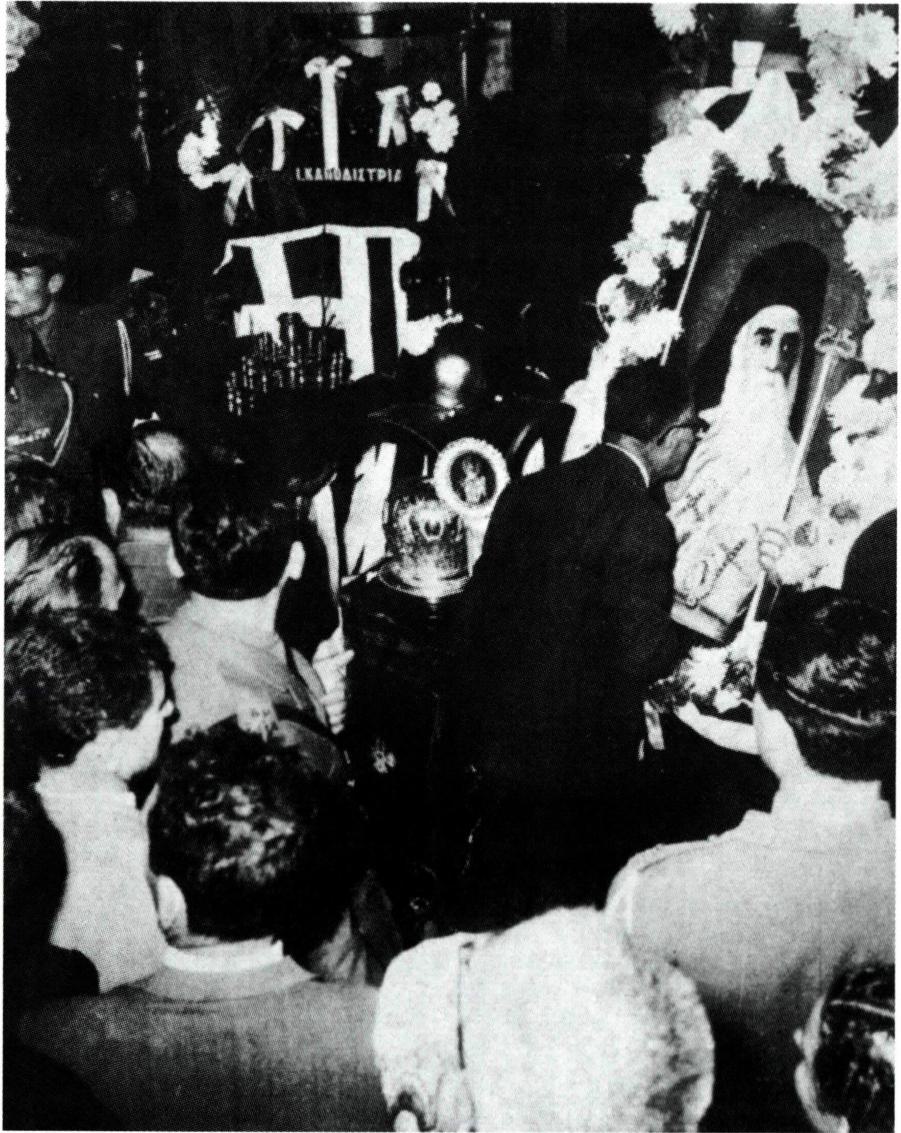 20세기 그리스 성인인 넥타리오스 케팔라스의 이콘 경배.