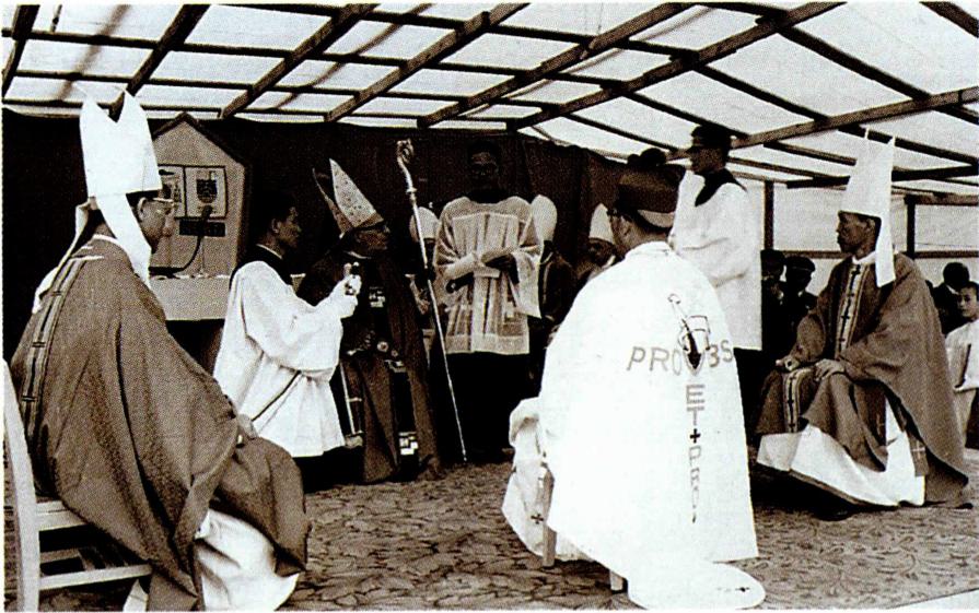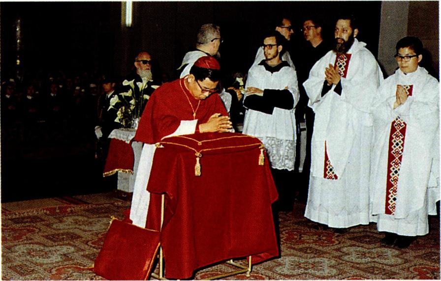 서울대교구장. 추기경. 세례명은 스테파노. 본관은 광 산(光山). 김동한(金東漢, 가롤로) 신부의 아우. 경북 대 구 남산동에서 김영석(金永錫, 요셉)과 서중하(徐仲夏, 마르티나)의 6남 2녀 중 막내로 태어났다. 그의 집안이 천주교와 관련을 맺게 된 것은 조부 때부터인데, 조부인 김보현(金甫鉉, 요한)은 1868년 무진박해(戊辰迫害) 때 충남 논산군 연산(連山)에서 체포되어 서울에서 순교하 였다. 이때 조모인 강말손(姜末孫)도 남편과 함께 체포 되었으나 임신한 몸이었으므로 석방되어 영석을 낳게 되 었으며, 영석은 성장한 뒤 영남 지방으로 이주하여 옹기 장사를 하다가 혼인한 뒤 대구에 정착하였다. 김수환은 이후 부친을 따라 군위(軍威)로 이주, 그곳에서 국민학 교를 다니다가 1933년 대구 성 유스티노 신학교 예비과 를 거쳐 동성상업학교 을조(소신학교)에 입학하였다. 1941년 동성상업학교를 졸업한 후 일본으로 건너가 상 지대학(上智大學) 문학부 철학과에 입학하였으나, 1944 년 학병으로 강제 징집되어 동경 남쪽 후시마(父島)에서 훈련을 받던 중 종전(終戰)을 맞고 상지대학에 복학하였 다. 그리고 1947년, 해방을 맞이한 조국으로 돌아와 성 신대학(가톨릭대학의 전신)에 편입, 4년 후인 1951년 9월 15일 대구에서 서품되었다. 김 신부는 이후 경북 안동 본당의 주임 신부로 사제 생 활의 첫발을 내디딘 이래 1953년 대구교구장 비서, 대 구교구 재경부장, 해성병원 원장, 1955년 경북 김천 본 당 주임 신부, 김천 성의중고등학교 교장, 대구교구 평의 원을 역임하였다. 그리고 1956년 7월에 독일 뮌스터 (Miinster) 대학으로 유학, 동 대학원에서 신학과 사회학 을 공부하고 1964년 귀국하여 가톨릭 시보사 사장으로 임명되었으며, 1966년 2월 15일 마산교구가 설정됨과 동시에 그 초대 교구장으로 임명되어 이해 5월 31일 주 교 성성식과 교구장 착좌식을 가졌다. 이때 김 주교는 초 대 교구장으로서 제2차 바티칸 공의회에서 제시한 교회 쇄신 정신에 따라 사목 행정을 펴나갔고, 한국 주교 회의 부의장과 세계 주교 대의원 회의 한국 부대표 등을 맡아 활동하였다. 그러던 중 1968년 서울대교구장 노기남(盧 基南, 바오로) 대주교가 사임하면서 동년 4월 서울대교 구장에 임명됨과 동시에 대주교로 승품되었고, 이듬해 4 월 28일 교황 바오로 6세에 의해 추기경으로 서임되어 4월 30일 로마에서 '성 펠릭스 성당' 명의의 추기경 서 임식을 가졌다. 김 추기경은 이후 1970년 한국 천주교 주교 회의 의 장과 여러 분과 위원장, 주교 회의 산하 여러 전국 단체 들의 총재를 역임했으며, 1974년 서강대학교에서 명예 문학 박사, 1977년 미국 노트르담 대학에서 명예 법학 박사, 1988년 일본 상지대학에서 명예 신학 박사, 1990 년 고려대학교에서 명예 철학 박사, 미국 시튼 힐(Seaton Hill) 대학에서 명예 법학 박사, 1994년 연세대학교에서 명예 신학 박사 학위를 받았다. 아울러 그 동안 한국 천 주교의 순교자 시성 운동, 해외 선교 사업, 조선교구 설 정 150주년 행사, 한국 천주교회 창설 200주년 행사, 서울 제44차 세계 성체 대회 등을 통해 한국 교회를 국 내외에 드러내는 데 많은 역할을 하였다. 또 서울대교구 장으로서 교구의 발전에 노력하여 1968년 말에 48개 본 당 14만여 명이던 교세를 1993년 말에는 163개 본당 1 백만여 명으로 확대시켰고, 교구의 성직자 양성에 힘쓴 결과 1993년 말 현재 성직자수 629명(한국인 536, 외국 인 93)을 기록하게 되었다. 뿐만 아니라 교구의 각종 사 회 사업을 발전시키는 데도 노력해 왔으며, 현재 서울대 교구 유지 재단 산하에 있는 각 기관과 단체의 이사장 및 총재를 맡고 있다. 한편 김 추기경은 1968년 서울대교구장에 취임하면 서 "교회의 높은 담을 헐고 사회 속에 교회를 심어야 한 다"는 인사말을 통해 제2차 바티칸 공의회의 정신에 따 른 교회 쇄신과 현실 참여의 원칙을 밝혔다. 동시에 가난 하면서도 봉사하는 교회, 한국의 역사 현실에 동참하는 교회상을 제시하여 교회 안팎의 젊은 지식인, 노동자들 로부터 전폭적인 지지를 얻었고, 이후 정치 현실과 노동 문제에 대한 강경 발언을 서슴지 않음으로써 대내외적으 로 인권 옹호자라는 명성을 얻기도 하였다. 그의 사회 교 리는 인간의 존엄성에 대한 확고한 신념을 바탕으로 하 는 공동선(共同善)의 추구에 목적을 두고 있는데, 그는 이러한 교리를 통해 모든 사회 구조나 정치 형태는 공동 선을 추구함에 있어 평등한 권익을 보장하고 특권 의식 과 배금주의를 버리며, 혁신과 정화의 근본이 되는 인간 내면의 회심을 주도해야 한다고 주장하였다. 또 이러한 공동선의 추구를 위한 실천 과정에서 교회는 불의와의 타협을 거부해야 한다고 역설하였다. 이와 같은 김 추기 경의 사회 교리에 대한 의식으로 한국 천주교회는 제3 공화국 이래 현재까지 정치 권력에 의해 많은 고난과 희 생을 받아 왔지만, 그 희생과 고난의 대가로 교회의 지위 가 대내외적으로 크게 격상되었고, 2000년대 복음화를 위한 발판도 다지게 되었다. (→ 서울대교구 ; 한국 천주 교회) ※ 참고문헌 《가톨릭 사전》 <가톨릭 신문>/ 구중서, 《대화집 : 김 수환 추기경》, 지식산업사, 1981/ 오효진, 《金壽煥
